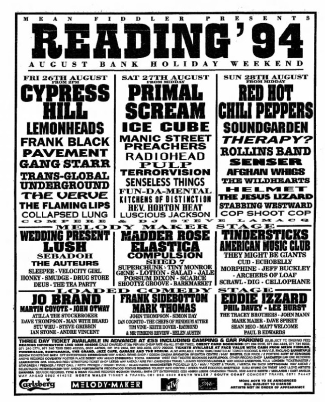 We reached out to Luscious Jackson and neither Kate or Jill remember being booked for Reading in 1994. It's currently a mystery why they were listed.