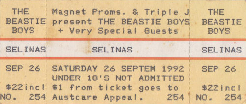 ...Then the Three Stooges bound across the stage. Nyuk, nyuk, nuyk, it's The Beastie Boys. Mike D, in flappy shorts and a head of bleached fuzz, could easily audition for the mighty Curly when the inevitable bio-movie eventuates. No longer the Bud-spraying, groin obsessed pubescents of old, the beasties prove tonight once and for all that they're not the cartoon brats they were painted initially.