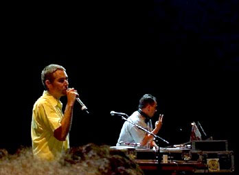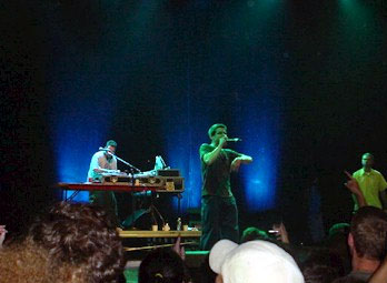 After so much hype-driven media babble about how cool and handsome they are, they simply let the music speak for itself, and it works beautifully. Of course, we're really here for one thing - to see the Beasties pass the mic for the first time in two years. As they stride onto the stage - cleared of everything save Mixmaster Mike's DJ booth - the place goes bananas. Even though the set is short, the Boys pull out all of the stops and most of the hits - ripping through revamped versions of 'Root Down', 'Sure Shot', 'Intergalactic', 'Alive' and 'So Whatcha Want' so fast Ad-Rock loses his place twice and has to start over. It's all a fantastic demonstration of how and why the Beasties have managed to remain relevant for nearly 15 years - half taking the piss, half consummate skill. Mixmaster Mike deftly weaves garage tunes and nu-skool hip-hop into the original songs, while Ad-Rock minces around like a class clown, Mike D throws ironic shapes and Adam Yauch presides stiffly over the proceedings like a judge. At one point, he stops to remind us of the rescue workers who are "doing the real work" and says he hopes we all carry the message of non-violence with us when we leave.