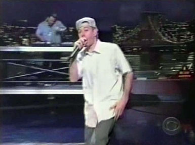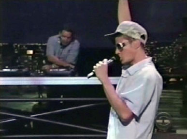 What a phenomenal day. It all started when I called in to get stand-by tickets for the Letterman show on Tuesday. I knew my chances of getting in were slim and my gut feeling was right. I missed out, only 14 were taken and I wasn't one of them. So I'm about to walk away when all of a sudden the b-boys walk out of the studio. They proceed to go thru a dry run of "Ch Check It Out." I was stoked that the performance would be of the indoor/outdoor variety. After the warm up, I jetted back to my place (luckily, I live just 3 blocks from where they tape it) and I grabbed my digital camera and sprinted back. For the next hour, I stressed out and analyzed just how I was going to get close enough to take some sweet shots of the Beasties. I knew I'd have to deal with security, the cops, photographers, and thousands of people blocking my way. As it turned out, I did get blocked and the pictures you see are the few that are worth viewing. Even my money shot was partially blocked by the security guy in the suit, but the whole scenario was cool nonetheless. I would've been bummed if I got a ticket and then missed out on all the action on 53rd Street. I've been a b-boys fan since 1985, and this experience definitely makes my top 10 list of Beastie Boys encounters.