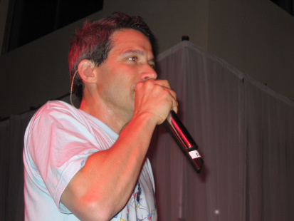 Amazingly, none of them fell off the small stage during the show. "Sure Shot" was a strong performance, as it normally is. It was straight up, nothing fancy or new. Mix Master Mike dropped in the same stuff as on the Pageant Tour. Like Mr. Diamond, Horovitz appeared to be suffering from a hearing