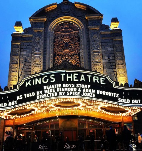 That was a line spoken by Adam “Ad-Rock” Horovitz near the beginning of Beastie Boys Story at Brooklyn’s Kings Theatre on Tuesday night. It was the second hometown presentation of the Spike Jonze-directed two-man show, which saw Ad-Rock and Michael “Mike D” Diamond unfolding the storied history of Beastie Boys. Ad-Rock’s somber sentence was referencing their absent third member, the late Adam “MCA” Yauch, who died in 2012.