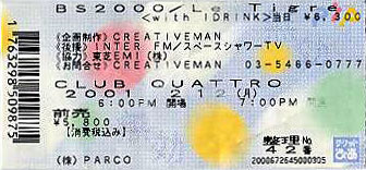 They took a lot of time to get ready (you know, Shibuya club Quattro is notorious for bad sound system), but the show was fantastic. I think even their show were better than BS2000's (only as a show, of course BS2000 were great, too!). First, they warmed up very carefully and said Hi to us. They wore cute costume of the same design and the music was really powerful, so we danced and danced. Their dance was good, too. Halfway through the show, we'd got the message of Yuka (from Cibo Matto) and she introduced some of their song in Japanese. Their messages are "sexual equality" and "f**k racial discrimination". I felt like "Hey! They're really cool!" I came to love them.