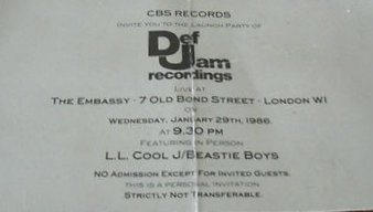 The Beastie Boys not so beastie after all? Seems so, though the last time this brat pack of NYHM rappers set foot on our shores, they managed to upset and outrage most of the nice record company and music press people it was worth outraging and upsetting. They smeared taramasalata over their guests at their highly hyped PA at the now defunct Embassy (a five-minute appearance, incidentally, which amounted to little more than a spirited effusion of four-letter words over a rampant beatbox), they talked alot about titties and crack and they made an awful mess of their hotel rooms, redecorating the Chelsea Holiday Inn with a variety of sarnies. Wild old stuff.