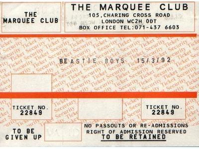 The Marquee was more or less packed, though partly with Americans, arousing the suspicion that the Boys had jumboed in some hired help to prevent a no-fans debacle. Scientists researching the theory that rap doesn't work well as a live experience would have uncovered ample corroborating evidence here. There was a woeful sense of motions being gone through as the threesome did their familiar head-butting prowls round the stage, barking syncopated gibberish into their microphones.