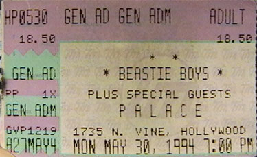 The Palace, Hollywood, CA — Ducats for this last-minute live appearance by the Beastie Boys, meant to whip up interest in the trio’s new Capitol album, III Communication, quickly became the tickets to score over this long holiday weekend (assuming no interest in either the Eagles or Barbra Streisand), and the Boys answered the excitement with one of their most riveting L.A. appearances ever.